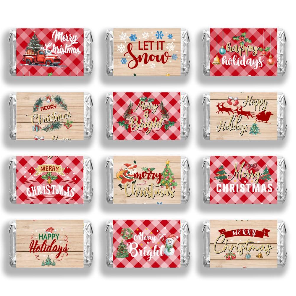 - Christmas Theme -- The candy wrappers are printed with words of "let it snow", "happy holidays", etc, and red plaid, elk, bell, santa claus patterns, matches colorful tones, beautiful and charming, creating the joyful atomosphere for Christmas party