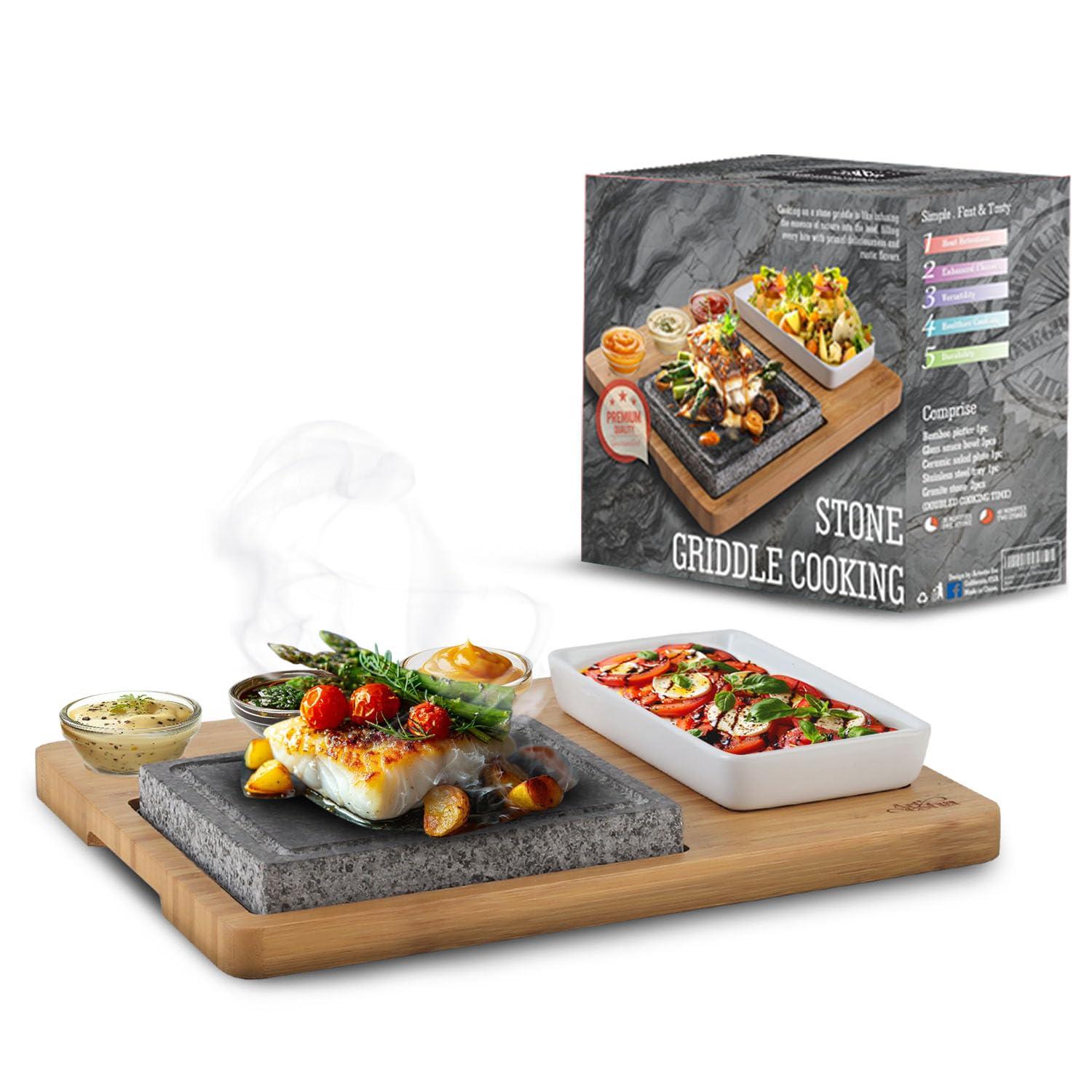 - IMPRESSIVE STONES - Elevate your meals with a sizzling, good taste using our hot steak cooking set. Cook steak, seafood, and other meat on the stovetop or BBQ grill, chill in the refrigerator for cold dishes, and safely transport the Salt Block Cooking Stone to the table. Perfect for adding flavor to various dishes, including steaks, fish, seafood, vegetables, and more. Your tastebuds will want you to cook more often on these things