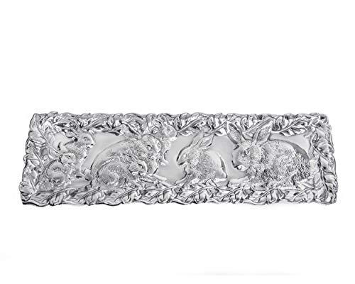 - At 19 x 6 inches, this tray offers ample space for an array of appetizers, desserts, or as a captivating centerpiece. The intricate detail in the bunnies' fur and surrounding foliage showcases Arthur Court's commitment to exceptional craftsmanship.