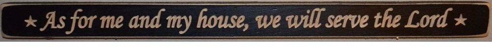 "As For Me And My House, We Will Serve The Lord", Wood Plaque Wall Hanging Engraved Sign 2 Foot Long, 3/4 Inch Thick, 1 5/8 Inches Tall, Painted Black with Sanded Edges, Letters Etched to Show Natural Wood Color to Match the Sanded Edge and Corners