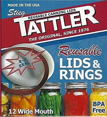 TATTLER REUSABLE CANNING LIDS THE ORIGINAL, SINCE Authentic Tattler E-Z Seal Reusable Canning Lids - Wide Mouth - 1 Dozen (12) Plastic Lid/Rubber Ring - MADE IN THE USA!
