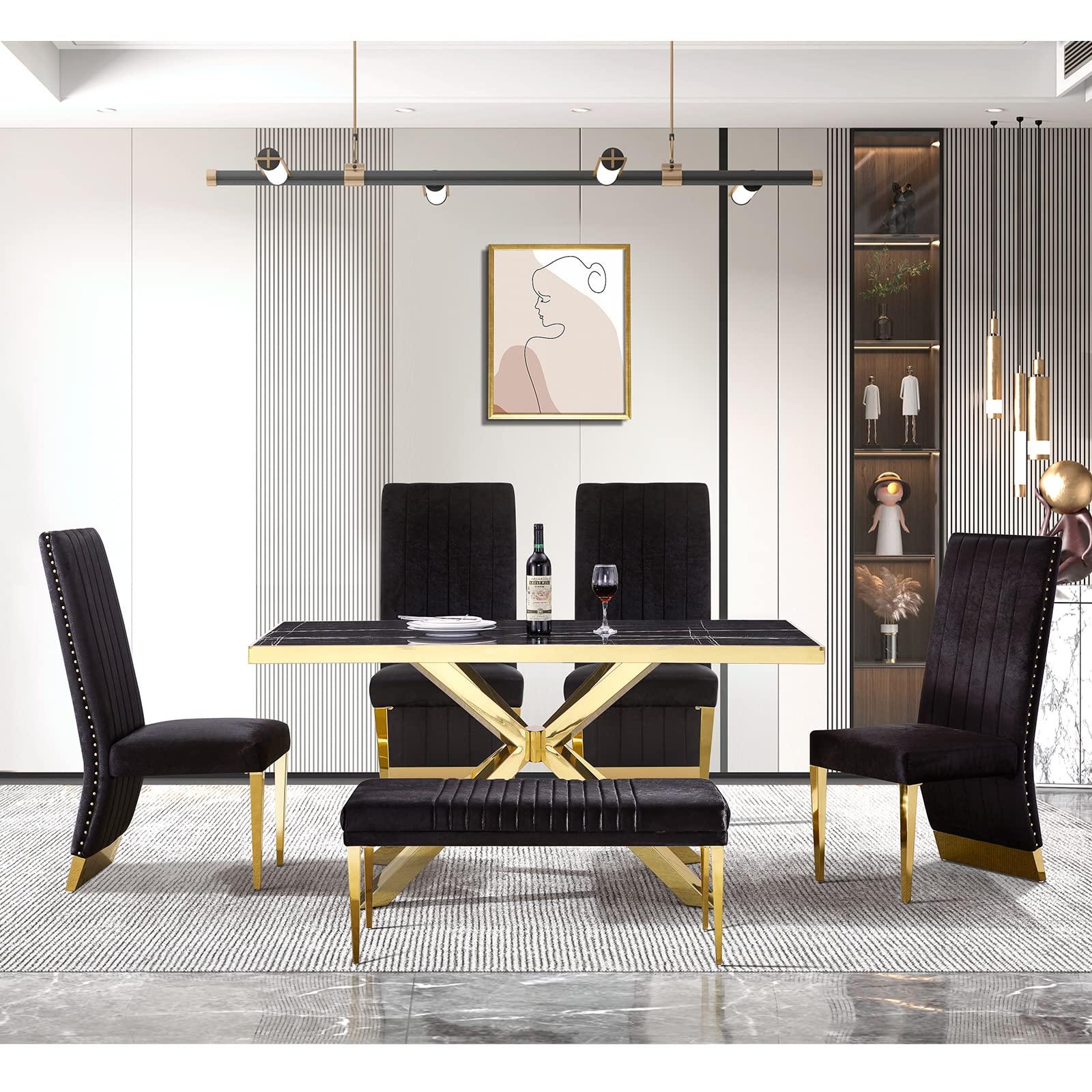 - Sturdy Construction: Golden stainless steel legs make this gold bench durable to support 600 lbs for 2 people. The foot pad can not only prevent slip, but prevent the floor from being scratched.
