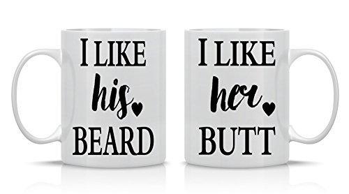 - FUNNY ICE BREAKER enjoy a relaxing morning with your new favorite ceramic coffee cup set for your favorite couple which reads I LIKE HIS BEARD, I LIKE HER BUTT COUPLES MUG on BOTH sides. Either youre looking for a cute gift for a bride and groom, or just looking for a unique wedding present this is the cutest housewarming gift. For husbands out there looking for a simple but thoughtful anniversary present, you cant go wrong with a gift that will remind her daily how much you care.
