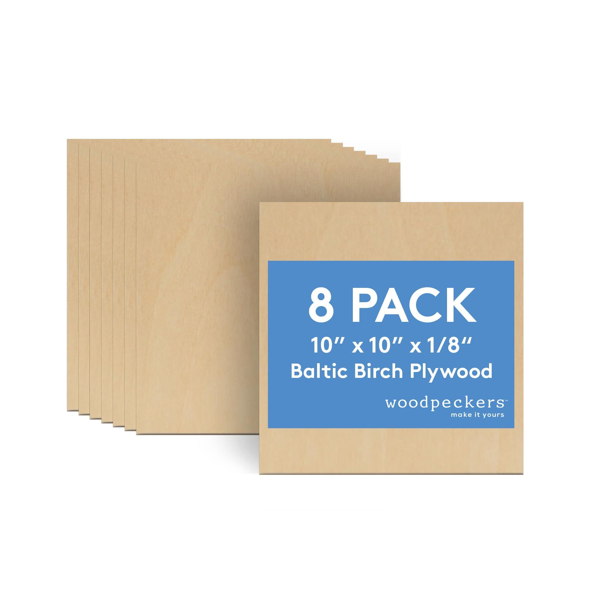 3 mm Baltic Birch Plywood 1/8 x 10 x 10 Inch, Box of 8 B/BB Grade Craft Wood, Stronger Than Basswood Sheets, for Laser, CNC Cutting and Wood Burning, by Woodpeckers