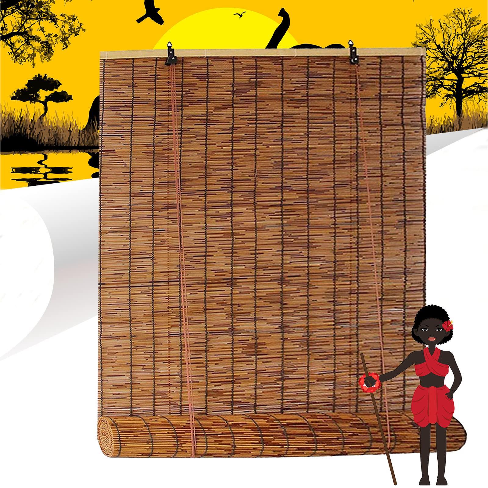 - [Shade and Privacy] The patio shades roll up outdoor have the properties of vacuuming, absorbing moisture and purifying the air. Carbonized reed roller blinds block of the sun, shielding you from the hot summer sun and keeping your room cool. This blinds roll up shade can cover patios, gazebos, living rooms, bedrooms, dens, offices, French doors, meeting rooms, balconies, kitchens or anywhere you need shade.