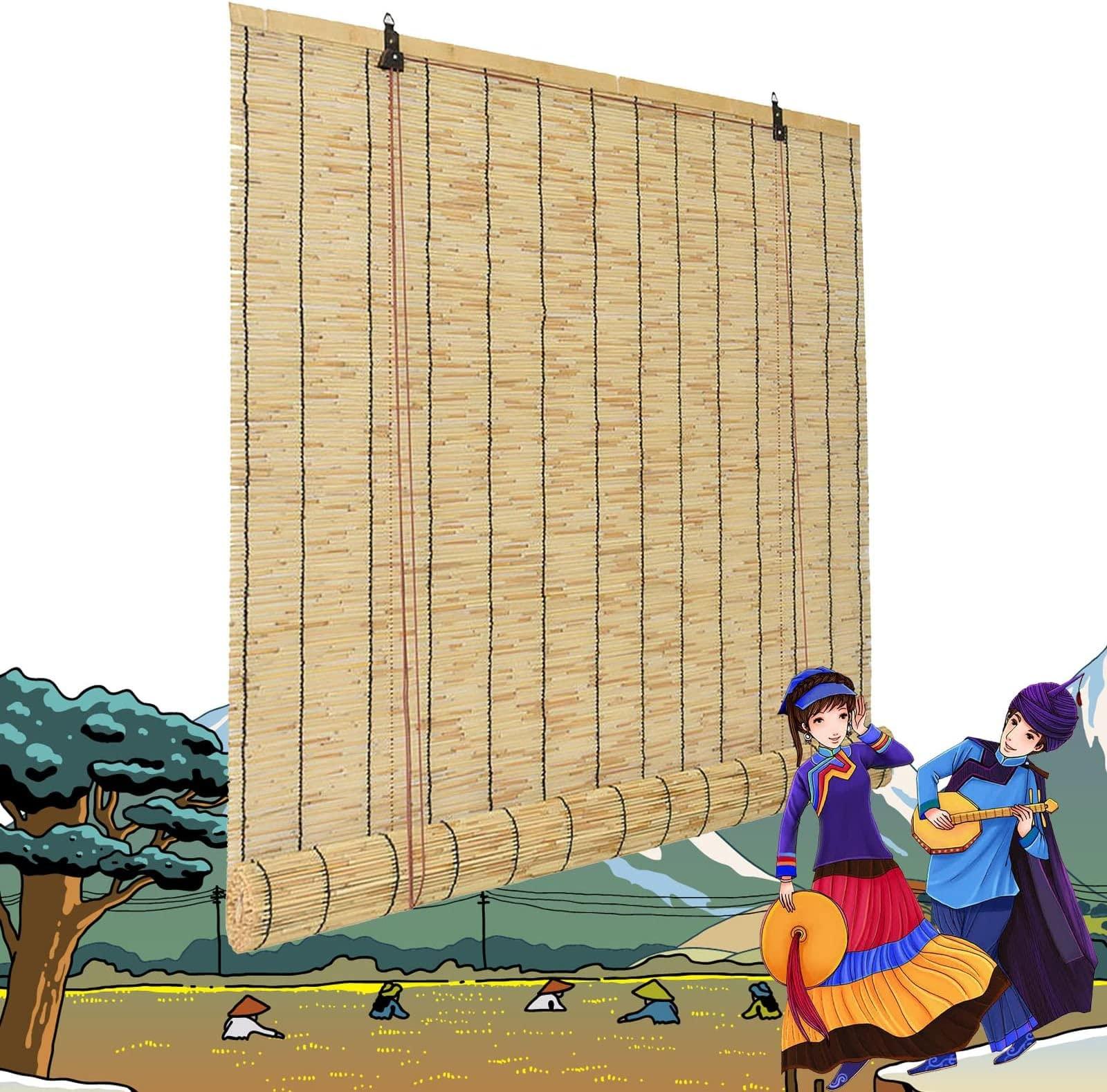 - [Shade and Privacy] The patio shades roll up outdoor have the properties of vacuuming, absorbing moisture and purifying the air. Carbonized reed roller blinds block of the sun, shielding you from the hot summer sun and keeping your room cool. This blinds roll up shade can cover patios, gazebos, living rooms, bedrooms, dens, offices, French doors, meeting rooms, balconies, kitchens or anywhere you need shade.