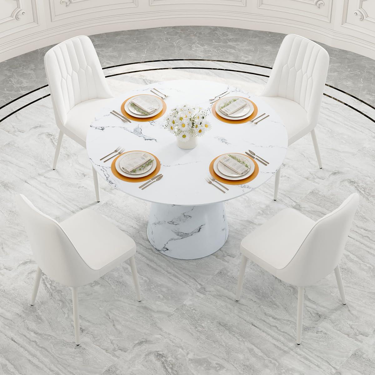 - Round Dining Table Set for 4Faux marble desktop is very easy to clean and maintain and 1" Thick Desktop Board can be used for a long time without deformation. MDF Strong base support the stable table. The bottom is equipped with non-slip rubber mat to protect the floor and maintain stability.