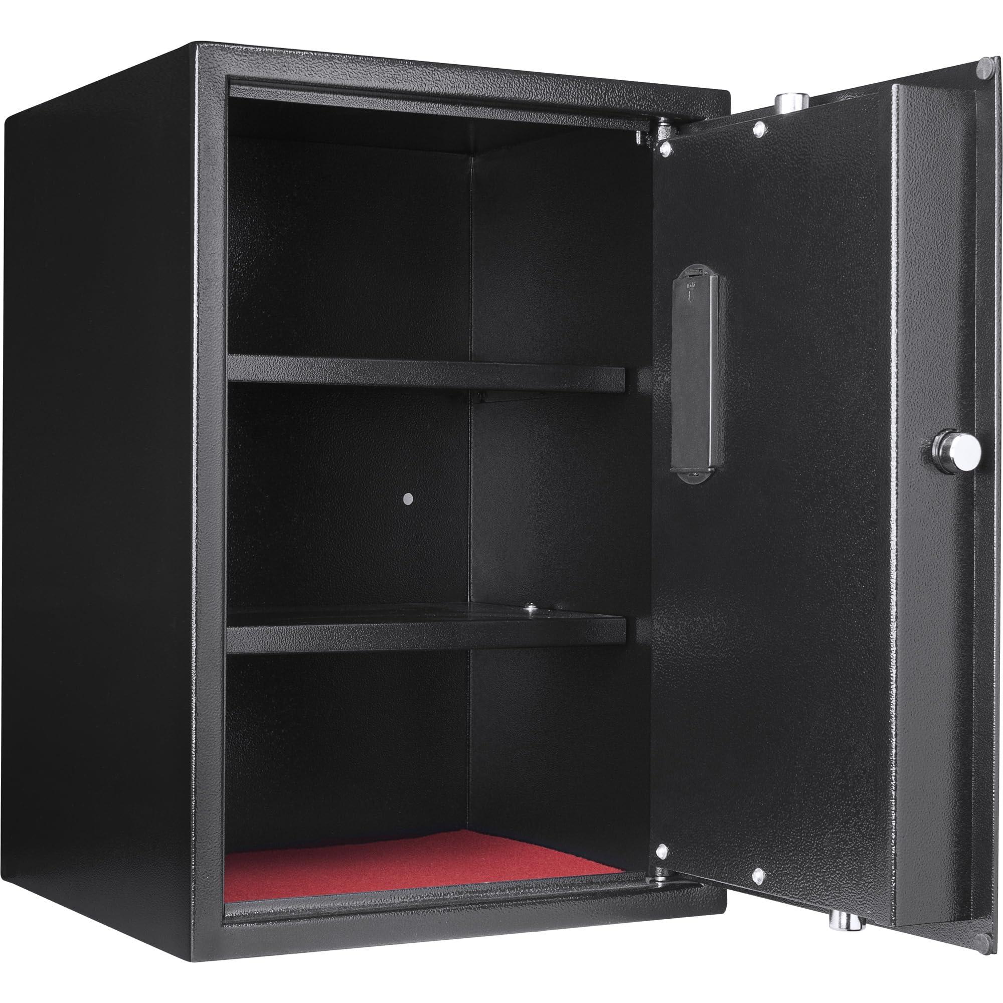 - Solid Construction: The safe comes with 3 built-in pry-resistant steel deadbolts. 2 Removable Shelves are included.