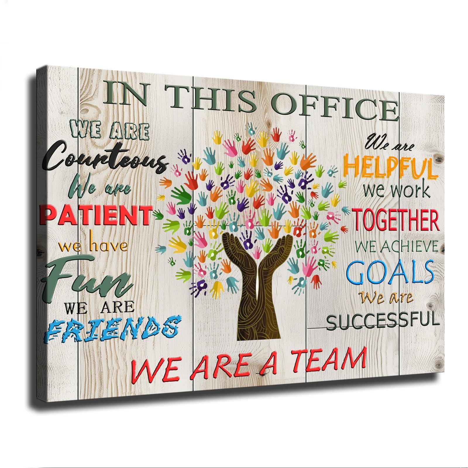 - EXCELLENT QUALITY:In This Office We Are A Team Saying - Teamwork Inspiration Motivational Poster is printed on high-quality canvas imported from Europe, using high-quality ink to maximize details. High-quality printing gives this beautiful fine canvas wall art a vivid sharp look and fade-resistant archival inks for perfect color reproduction to keep it vibrant for decades.