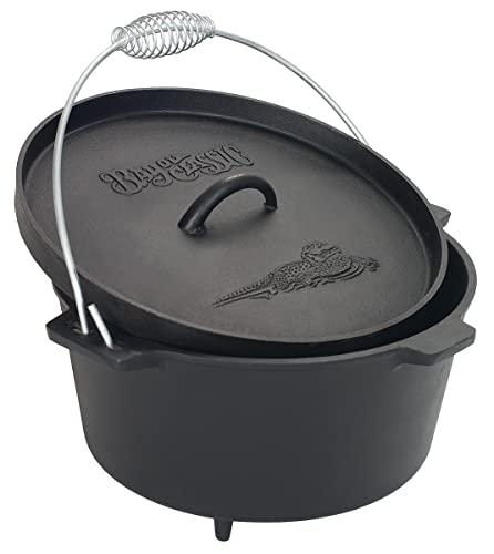 Bring rustic appeal to your kitchen with Bayou Classic Cast Iron Cookware. This heavyweight 8.5 quart Dutch oven with feet is deal for slow cooking jambalayas, stews, gumbos, chowder, or chili. Use it to fry fish, chicken, hush puppies, or French fries. You can bake cornbread or biscuits. Gather with friends and family for warm dinners or Sunday brunches. Whatever occasion, cooking with Bayou Classic cast iron adds a cozy farmhouse feel to the modern kitchen. Lid is etched with a Bayou alligator for a unique cajun detail.