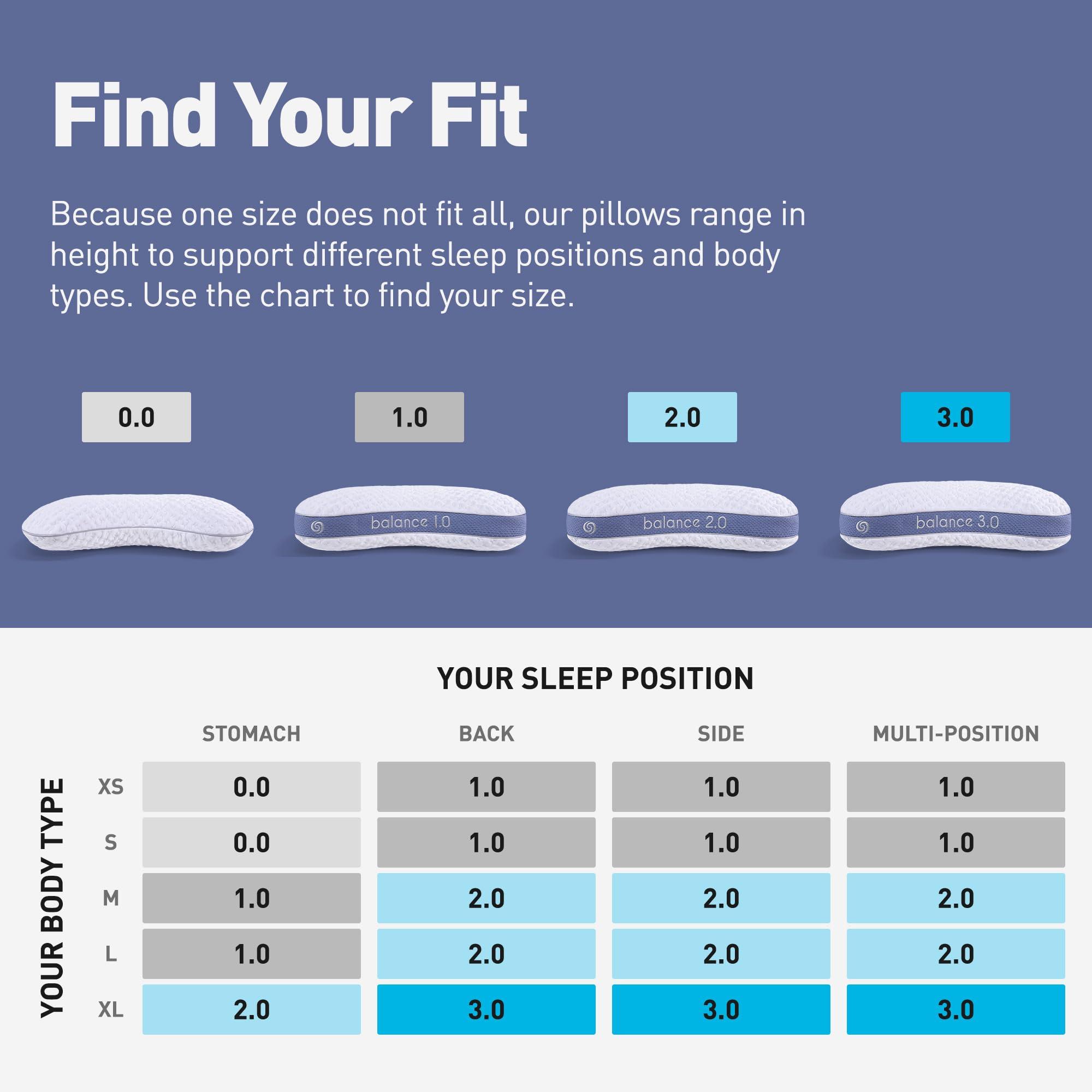 - PERFECT FOR SIDE SLEEPERS : Your body has curves, and your sleeping pillow should too. This curved bed pillow contours to your body and cradles your neck and shoulders. This pillow is perfect for side sleepers. Use the Find Your Fit chart to find the perfect pillow height for you. 20" W x 26" L