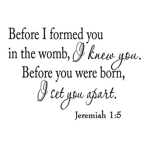 Before I Formed You in The Womb I Knew You. Before You were Born, I Set You Apart. Jeremiah 1-5 Vinyl Wall Art Religious Home Decor Bible Scripture Quote Nursery Wall Decal