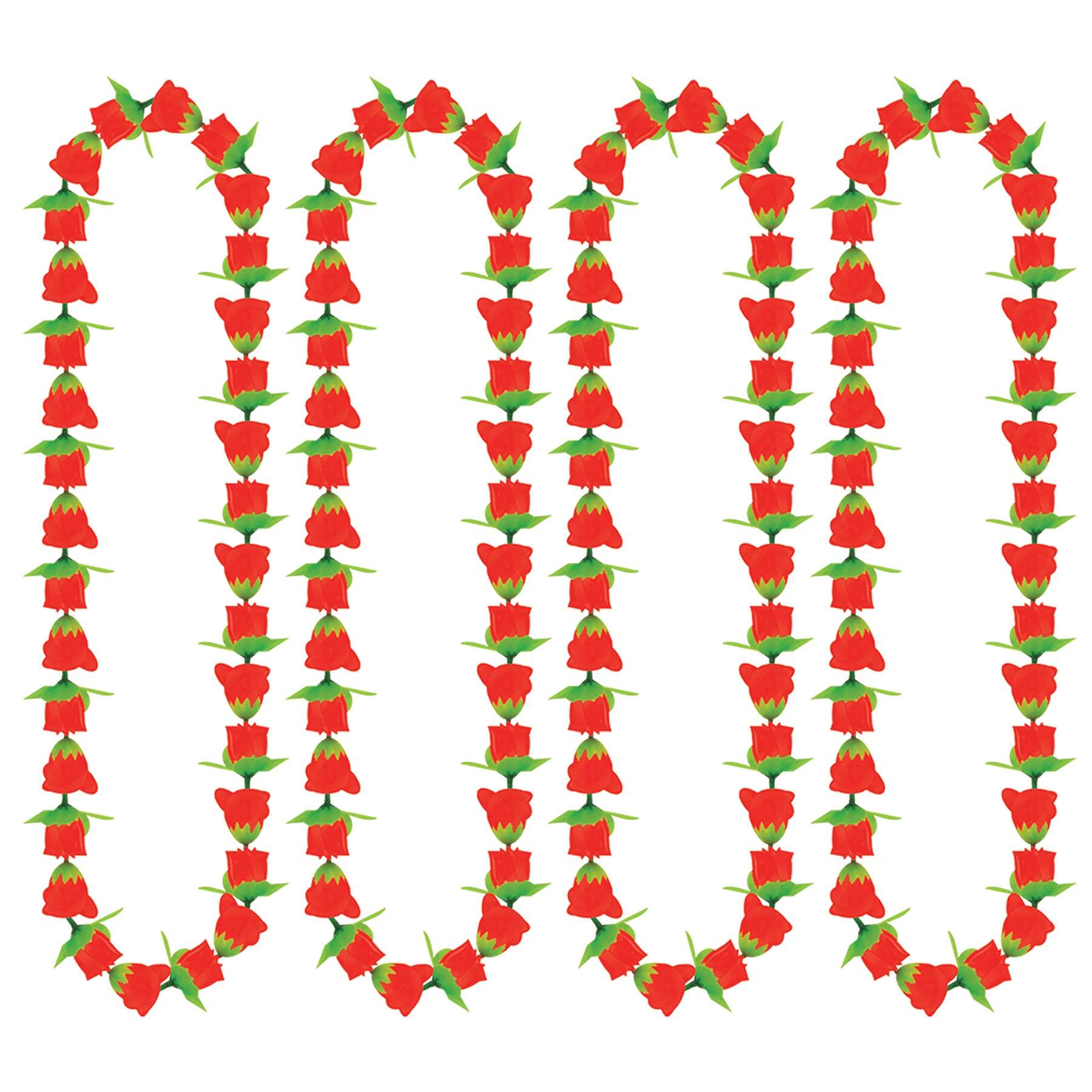 - INCLUDES: 4 Rose Lei Necklaces in the package
