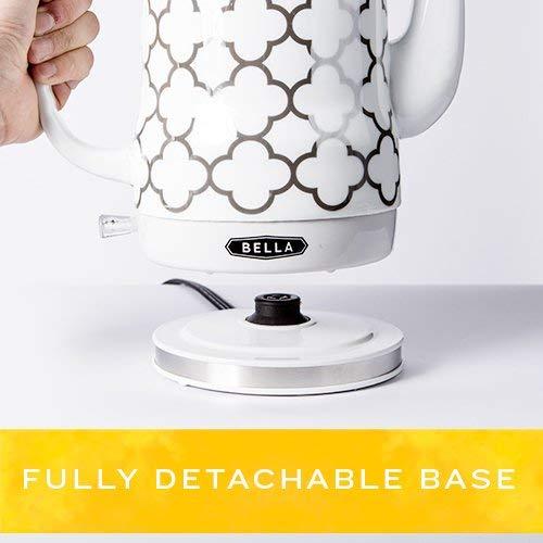 Boil water for your tea and coffee in style with the BELLA Electric Ceramic Kettle. This one of kind full ceramic kettle is the perfect entertaining piece for all you tea and coffee lovers out there. Offered in a variety of colors and patterns it is the perfect decorative piece to add to any kitchen. What's more? It boils water faster than a microwave and is safer than a stove! Simply flip the switch and let this electric tea kettle do the work for you. It features a built in auto shutoff feature so you know your kettle turns off as soon as your water reaches the optimal boiling point. Additionally, the full ceramic design delivers great tasting water free of metallic or rubber tastes. Clearly marked minimum and maximum fill lines for guess-free boiling