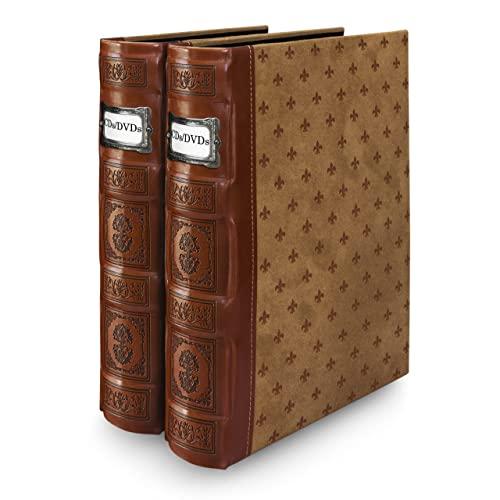 Bellagio-Italia Tuscany CD/DVD Storage Binder Set - Leather - 96-Disc Capacity - Storage Organizer for DVDs, CDs, Blu Rays, & Video Games - Acid-Free Binder Organizer Sheets - 2 Pack - Cognac