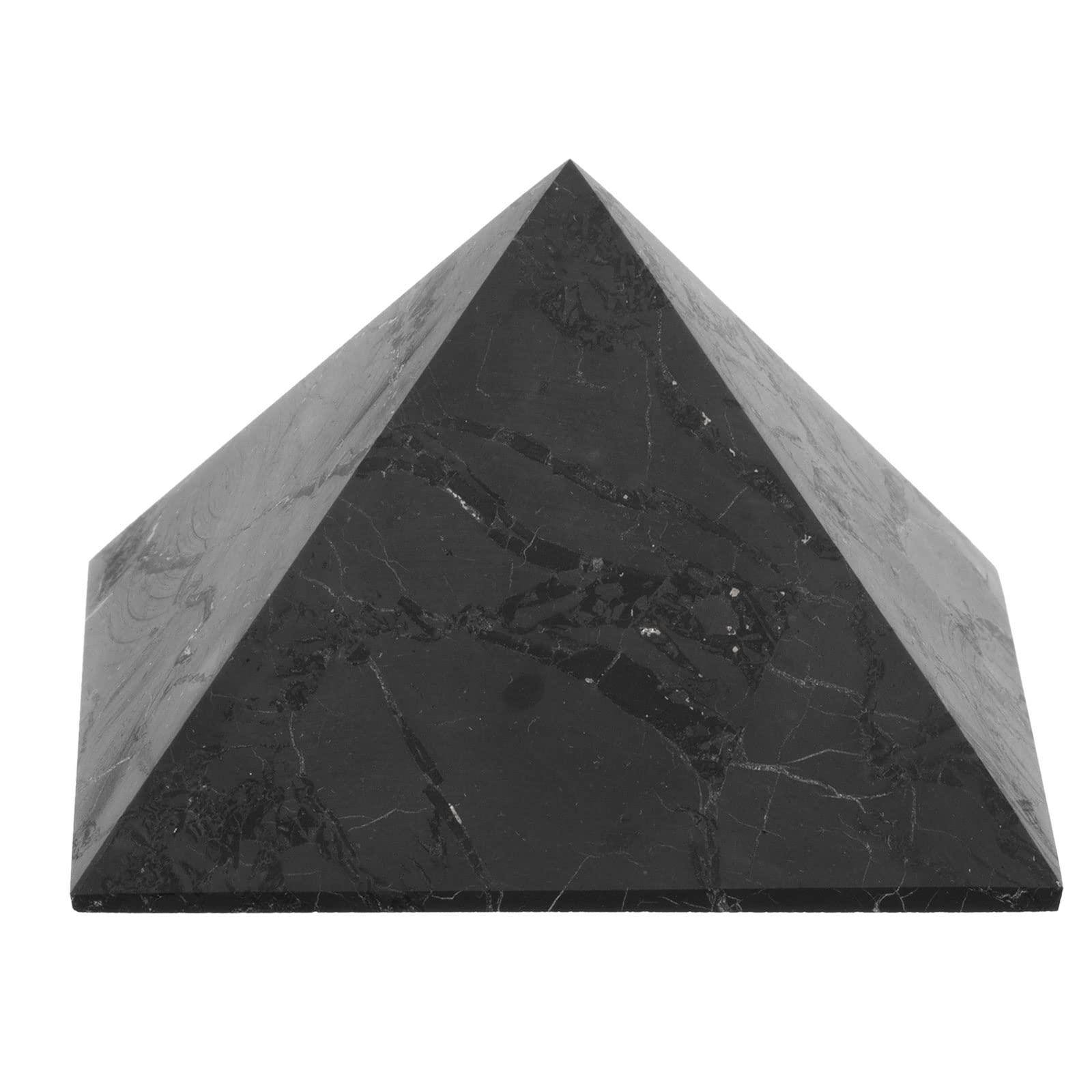 - This shungite pyramid pocket size handmade-carved from a solid piece of natural authentic shungite stone. This is not a pressed stamped factory mold. The size of this pyramid is approximately 4.7 inches / 12 cm. But the sizes of each pyramid are unique and slightly different, because it is handmade. The surface of the pyramid are natural unpolished.