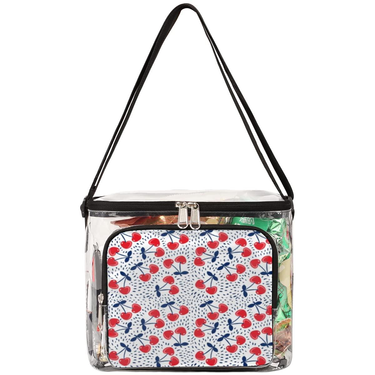 bisibuy bisibuy Cherry Print Clear Lunch Bag Stadium Approved PVC Plastic See Through Lunch box with Adjustable Strap for Sports Events Concerts Office