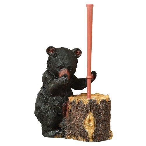 A Black Forest Decor Exclusive - The mischievous polyresin Black Bear Toilet Brush with tree trunk holder makes cleaning fun. Includes plastic brush. Measures 9"W x 6"D x 10"H. ~