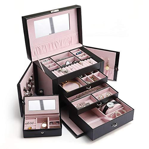 - Perfect for Travel: This jewelry box features a large mirror on the top lid and a removable mini travel jewelry box with a small mirror. It\'s perfect for any trip and can hold even more rings, necklaces, earrings, and other jewelry. Plus, it\'s locked with a key to keep your valuables safe.