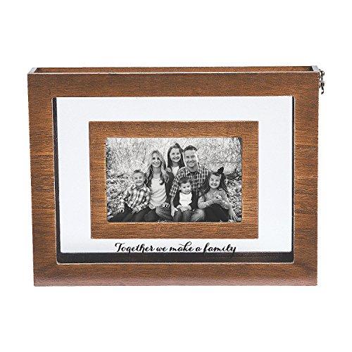"Make a statement about your family unity with this Blended Family Sand Ceremony Photo Frame. Include the children in the unity ceremony during the wedding have each child and both parents add sand to the frame and put a favorite picture of the entire new family inside. This frame makes a great keepsake and home decoration after the wedding. Wood and glass. 12 x 1 3/4 x 9 with a 6 x 4 photo space. Sand not included.