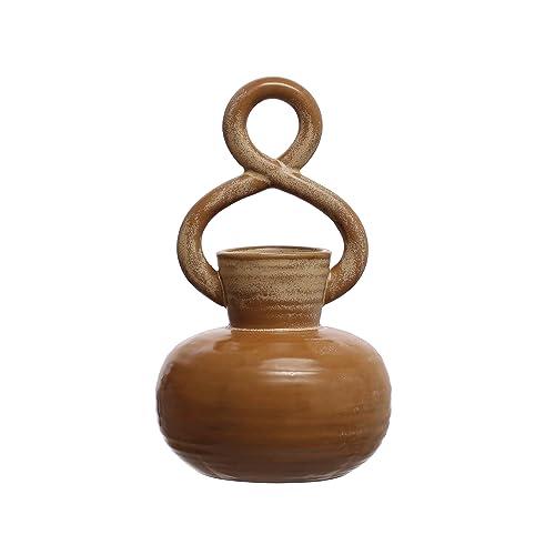- Introducing the exquisite Round Stoneware Vase with Twisted Handle with a unique twisted handle that adds a touch of elegance and intrigue to its design
