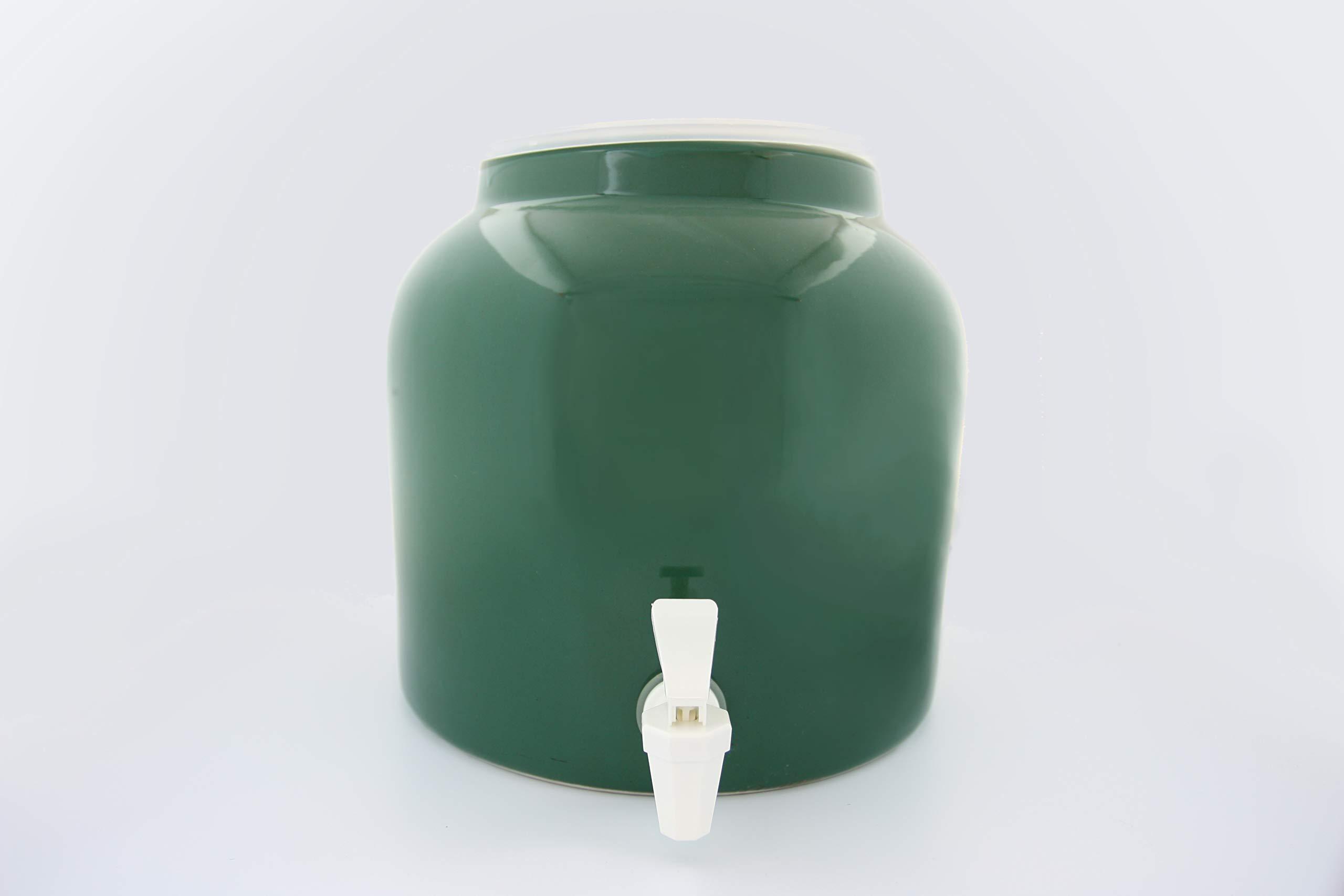 The blue wave water dispenser crock can hold up to approximately 2.2 US gallons of you and your guests' preferred beverage. Made of lead-free and high quality porcelain, you can use it for a long time. Perfect for your kitchen, office, or outdoor event. The crock can hold an additional water bottle on top (a 2 - 5 gallon water bottle). Room temperature only. Comes with a dispensing faucet valve and plastic ring. Beverage dispenser only - water bottle, stand, and lid not included.