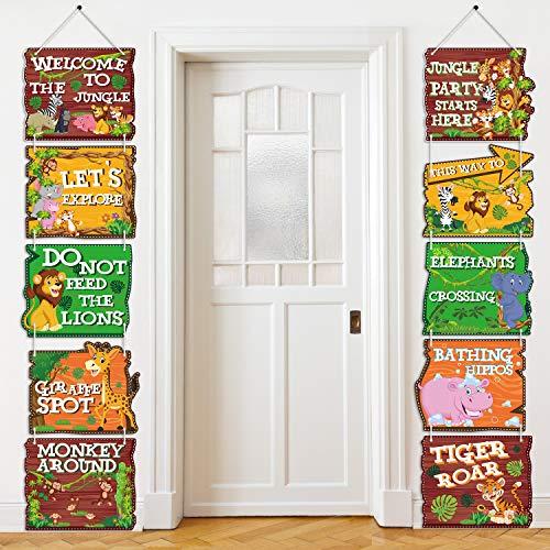 - Packing includes: 10 pieces jungle animals sign cutouts, the size of each cards is 11.8 x 9.85 inch/ 30 x 25 cm; 2 Ropes which the length of each one is 4 m/ 13.12 ft; 40 Pieces non-trace glue points; The animal sign is big enough to decorate your party, impress your family and bring your party to life