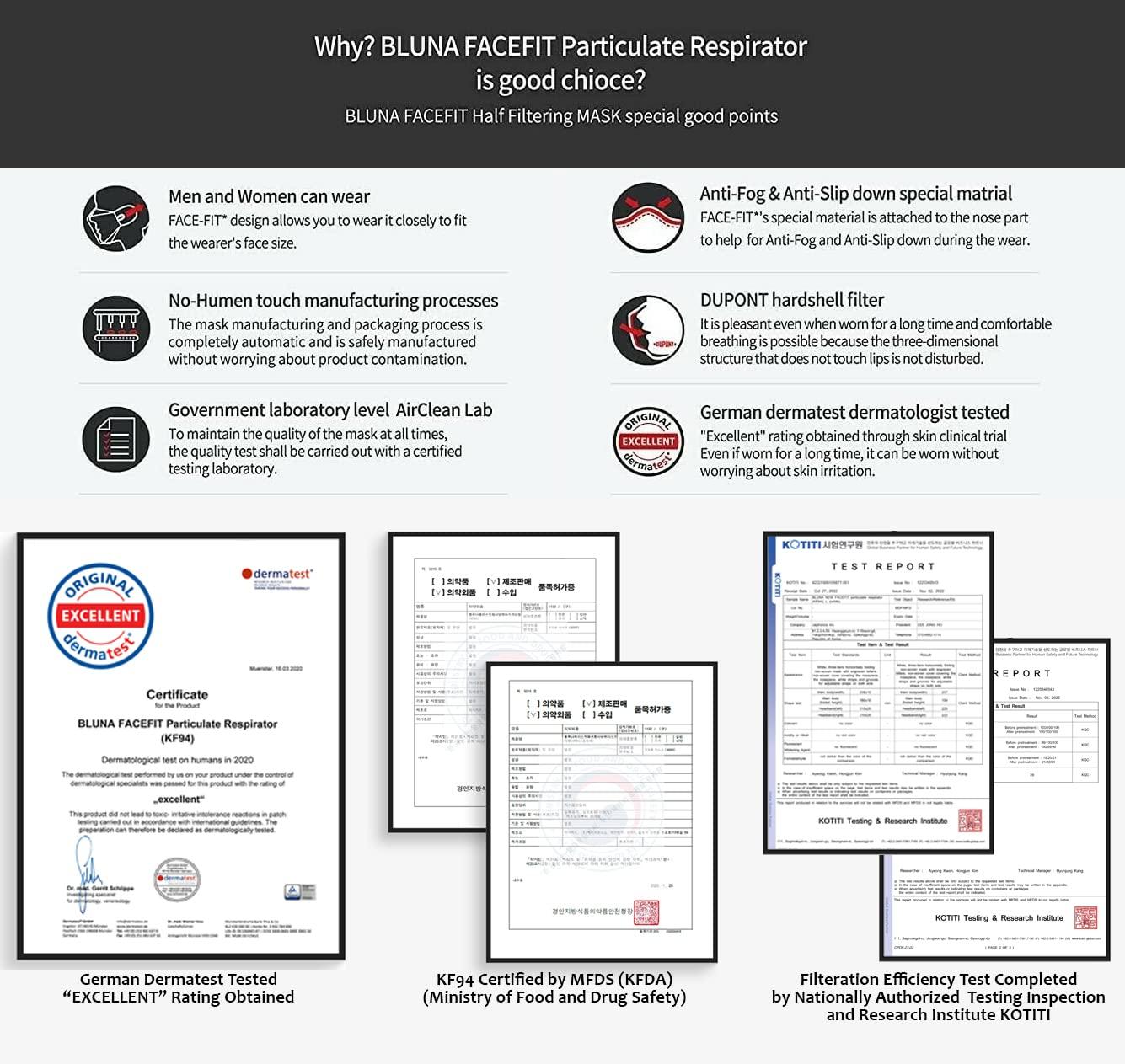 - [PREMIUM QUALITY] KF94 Rating Certified in South Korea with Many Other Certificates - Please see List of Certificates provided on product image.