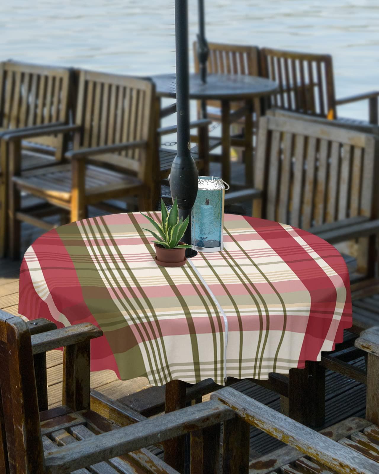 - Outdoor Tablecloth with Umbrella Hole&Zipper: The zippered tablecloth has an umbrella hole in the middle. This is very functional, and doesn't require us to remove the patio umbrella just to put the rustic table clothe on. Easy to zip on and off, and keep the desktop flat. No need for additional outdoor tablecloth clips, you can enjoy afternoon tea time under the lawn umbrella with the breeze blowing, and don't worry about the picnic table cloths being blown away.