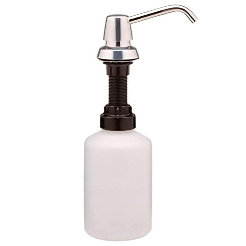 Corrosion resistant soap dispenser has vandal-resistant locking cover and free-turning spout. Body and shank are high-impact-resistant ABS plastic with a shatter-resistant polyethylene container., 20-fl. oz. (0.6-L) capacity, 4" (100mm) spout length, 1" (25mm) mounting thickness, bright-polished spout., Lot of 1