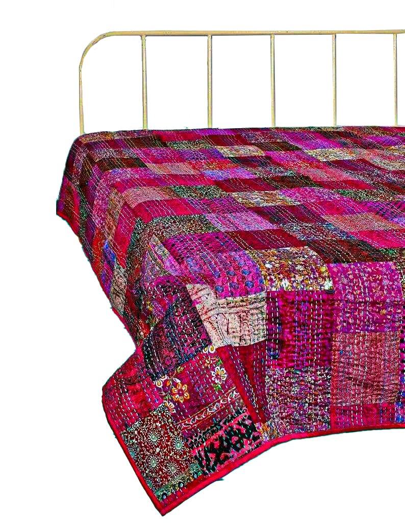 - Indian Traditiona Silk Patchwork Kantha Quilt & Blanket