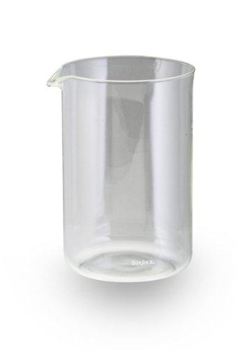 Crafted from borosilicate glass, this replacement carafe is designed for use with BonJour Coffee French presses. The carafe capacity is 50.7 fluid ounces, equal to twelve 4-ounce espresso-sized cups of coffee, and fits all equivalently-sized French presses that require a glass carafe. The heat-resistant carafe features an easy-pour spout to help pour and serve French press coffee. Hand-washing is recommended for years of hot beverage enjoyment.