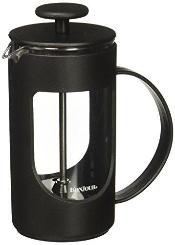 Experience bistro-style coffee in the comforts of home with the BonJour Coffee Unbreakable Plastic French Press. This stylish 12.7-ounce press brews 3, 4-ounce espresso-sized cups of coffee and is crafted from crystal-clear, unbreakable BPA-free Tritan plastic. A patented shut-off infuser integrated right into the plunger of the French coffee press halts the brewing process to lock in fresh-pressed flavor. Additionally, an ingenious filtering lid helps reduce sediment in cups of coffee and espresso-based drinks. The plastic French press is dishwasher safe for easy cleanup.