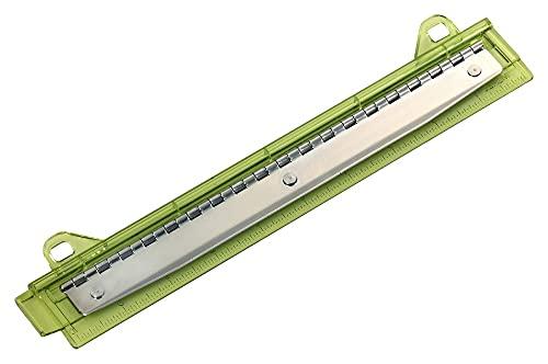 A handy hole punch that can travel with you for your on-the-go needs. Designed in an assortment of fun translucent colors that are sure to attract admirers, this efficient compact 3-hole punch is great for travel, work, home, or for storing in standard 3 ring binders in junior high or high school. For optimal performance, the steel punch heads go through up to 5 sheets of paper while the integrated ruler ensures accuracy every time. Assorted translucent colors are: Blue, Purple, Pink, and Green. Colors vary - a specific color is not guaranteed.