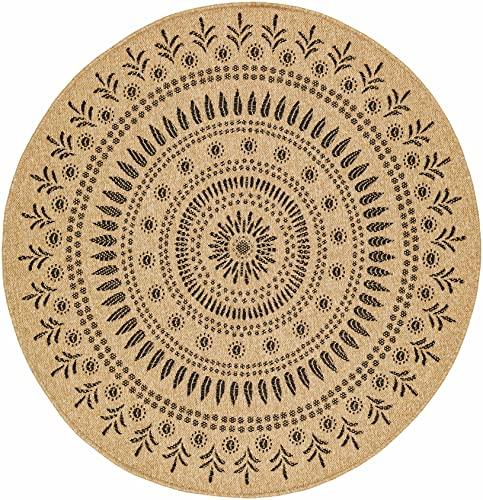 BoutiqueRugs Beata Traditional, Transitional Area Rug - Outdoor Safe - Tan, Black White, White Tonal - 5'1" Square