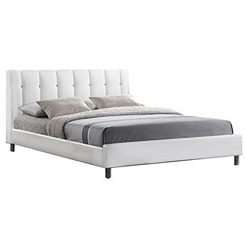 BOWERY HILL Full Platform Bed with Faux Leather Headboard in White