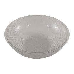This round pebbled serving bowl is made of virtually unbreakable polycarbonate material. It is ideal for fruit, salads, snacks and desserts. Textured on the outside for an elegant look. It is very smooth on the inside for easy cleaning. NSF listed, break resistant with smooth interior. Comes with 5.8-quart capacity. Measures 12-inch inside diameter.