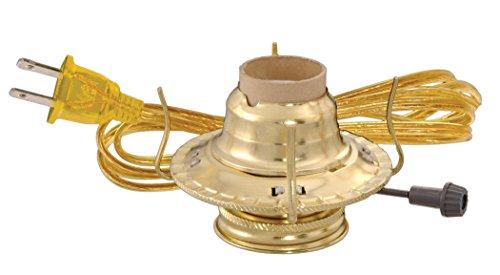 B&P Lamp #2 burner, brass plated, gold cord, on-off switch, No. 2 Brass plated electrified burner, Fits most No. 2 size collars and comes with removable screw-on collar that also fits threaded glass bases, Wired with quality UL listed parts, Accepts a 3" base chimney, Burner is compatible with the following parts: