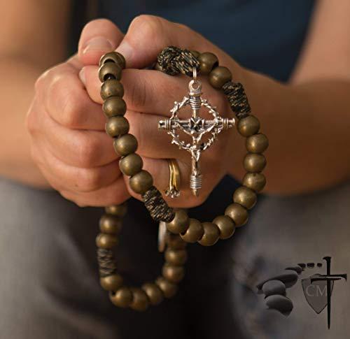 The Catholic Milestones Paracord Rosary. Antique brass colored acrylic beads, King Snake 550 paracord, and an Italian Passion Crucifix. Each rosary is approximately 20 inches in length with some variation. Our Paracord Rosaries are strong, durable, and never tangle. We only use Rosary parts made in Italy and all rosaries include a carry pouch. Limited quantity, order yours today.