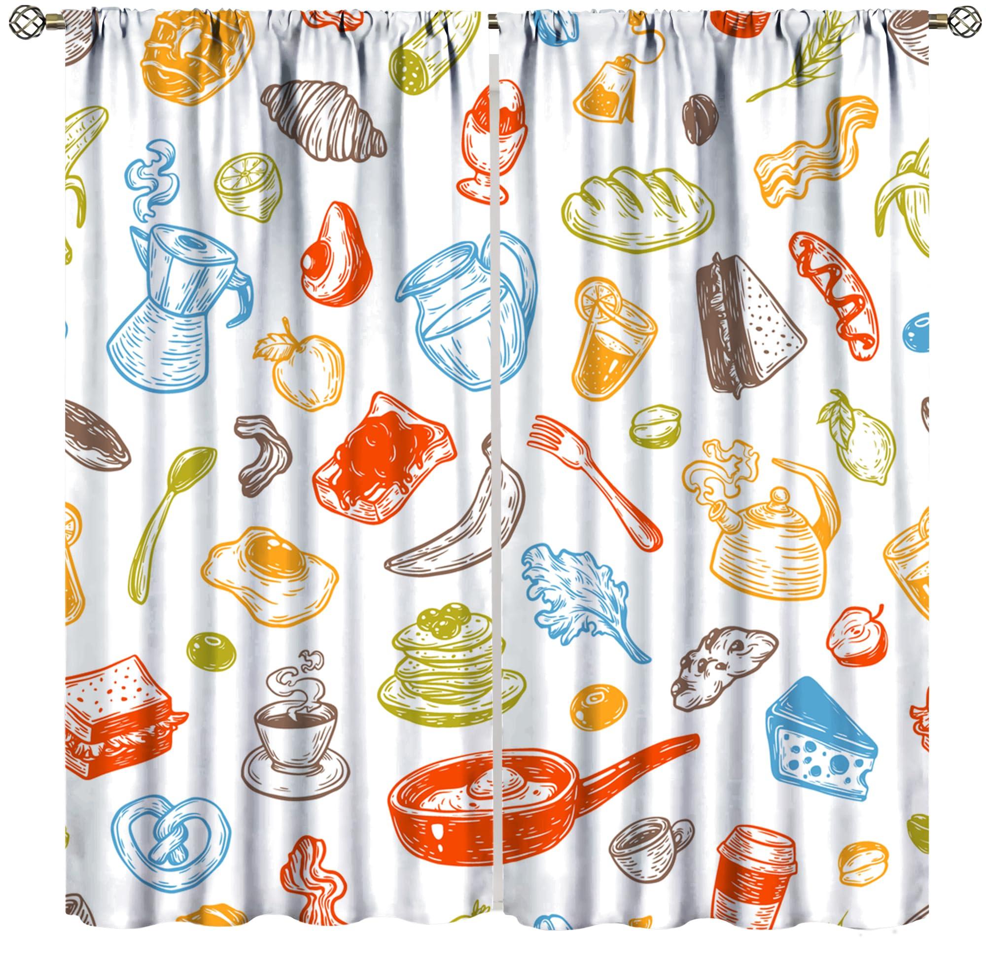 Chocolatemaoutdash Breakfast and Morning Blackout Curtains Vector Breakfast Food,Meal and Drinks Rod Pocket Thermal Insulated Drapes Darkening Window Curtain for Bedroom Living Room Kitchen 31.5x63in x 2