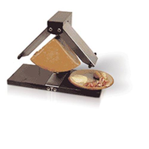 Cheese melts easily in Bron-Coucke's revolving adjustable raclette grill, which holds 1/6, 1/4, 1/3 rounds of cheese. Includes knife for scraping molten cheese. Made in France.