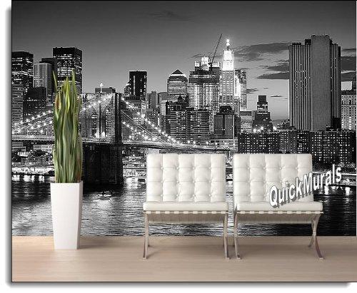 Brooklyn Bridge Black and White Peel & Stick Canvas Wall Mural (10 1/2 Feet Wide x 8 Feet 2 Inches High) Easier to install and easier to remove than any other mural! We Guarantee it! Installs instantly - without paste or tools! Simply peel off the protective backing and stick it to to any smooth, flat non-porous surface - indoors or outdoors. Apply directly to walls without the use of additional wall liners or primers! Can even be applied directly onto glass. Digitally printed using the latest technology for remarkable detail. Need a change? Just move it to another wall because Quick Murals are repositionable!