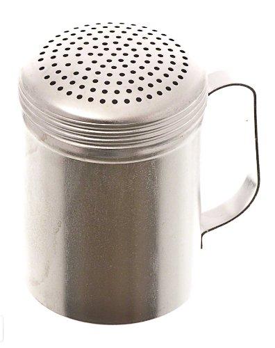 This dredge is durable and attractive. Made of aluminum material. This dredge has been designed with universal holes that can dispense a variety of ingredients, from cinnamon to powdered sugar. The dredge comes with a handle that is securely attached to the body, thus facilitating comfortable and efficient use. Available in satin finish. Comes with 10-ounce capacity. Measures 2-1/2-inch diameter by 3-2/3-inch height.