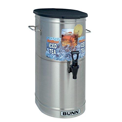BUNN TDO-4 Iced Tea Dispenser with solid lid is designed to hold and serve up to four gallon of iced tea or iced coffee. When proper precautions are followed, tea/coffee may be brewed directly into the dispenser and then transported to a remote serving location. The dispenser must be placed on a sturdy counter or shelf.