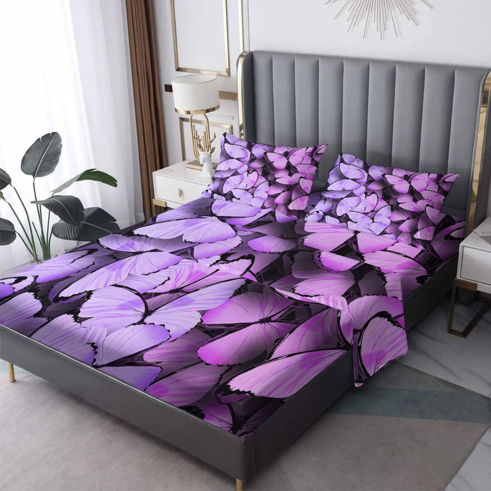 Butterfly Sheets Twin XL Sheet Sets - Purple Butterflies Bed Sheets, Soft Microfiber & Deep Pocket & Wrinkle Free Bedding Sheets & Pillowcases, 3 Piece ( 1 Fitted Sheet, 1 Flat Sheet, 1 Pillow Case )