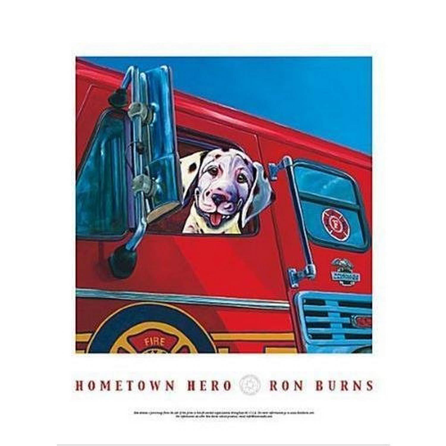 Hometown hero by Ron burns 24x18 art poster print cute funny animals dog puppy Dalmatian on firetruck