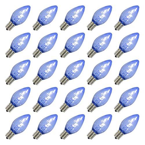 Transparent Blue - C7 - Candelabra Screw (E12) Base - 120 volt - LED - Dimmable - Twinkle | Vickerman Christmas Light Bulb Replacement (25 pack)
