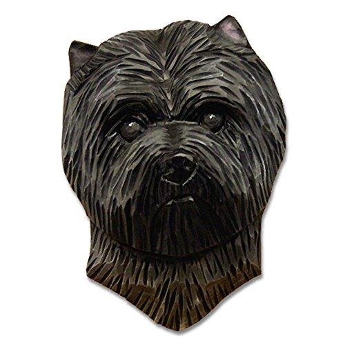 Cairn Terrer Head Plaque Figurine Dark GreyThis beautiful Cairn Terrier plaque is cast from a piece of hand carved wood. The wood is hand carved to give the dog a two dimensional detailing. The plaque is then cast from the wooden mold and hand painted. Made in the USA, these plaques can be hanged on any wall or covered front door. The backside has a sawtooth hanger so you can easily display the plaque wherever you'd like. The breed size varies but averages at about 6 inches tall.Made in the USATwo DimensionalFlat BacksidePlease allow 7-10 days from date of purchase before shipment for production of product.If ordering for a holiday gift be sure to order at least 3-4 weeks before Christmas