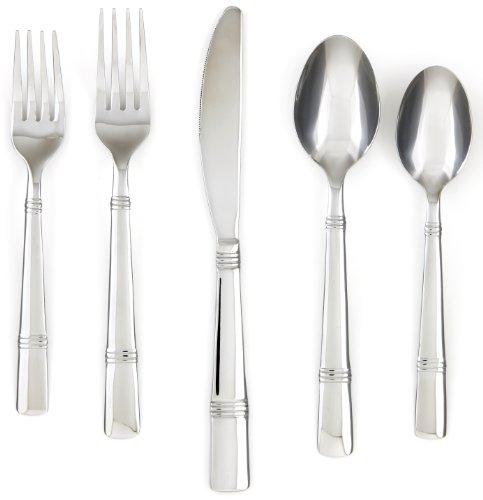 - Set Includes: 12 salad forks, 12 dinner forks, 12 teaspoons, 12 tablespoons, 12 butter knives plus 5 serving pieces