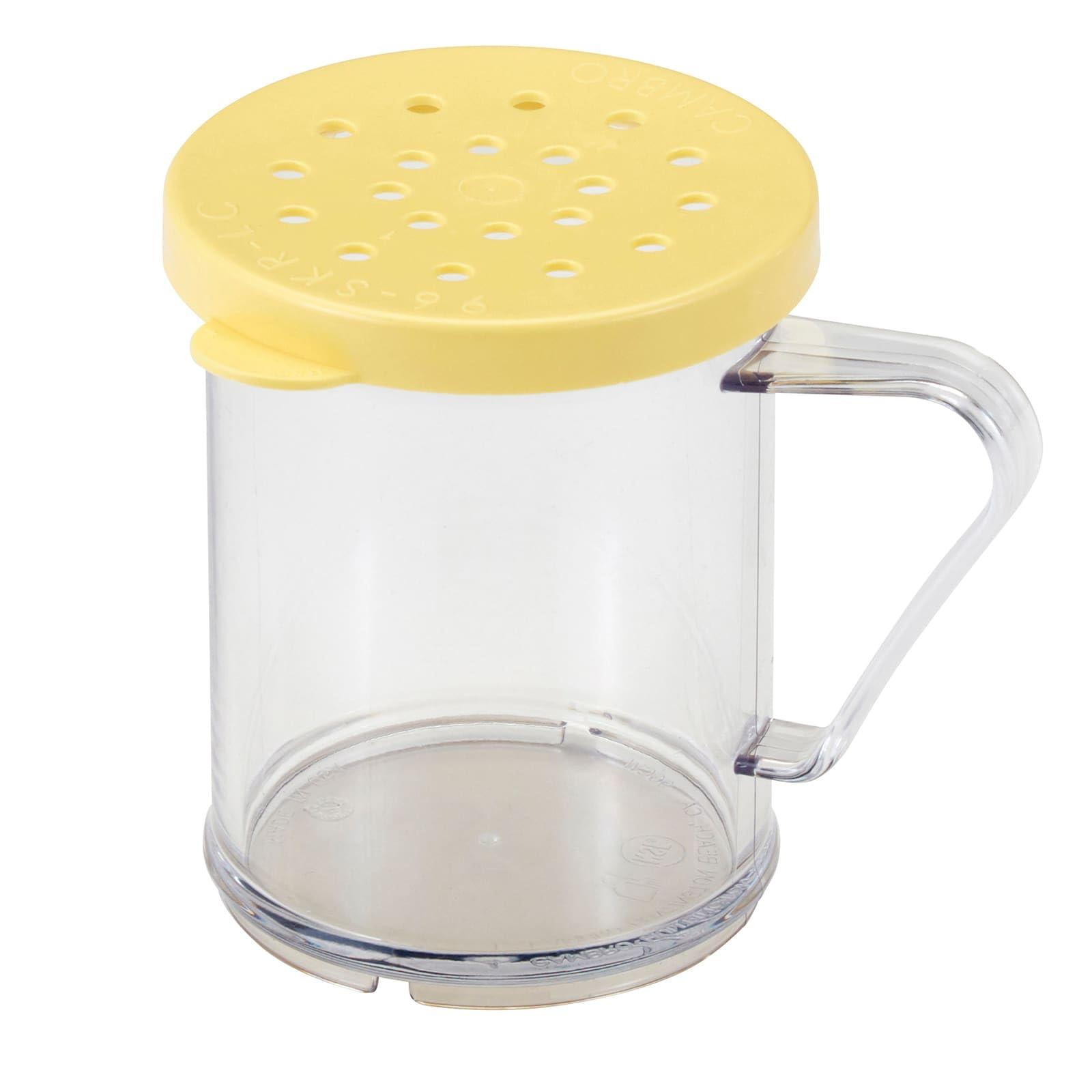 Shakers are a staple in the kitchen, condiment station, and dining table. The Cambro Camwear shaker is constructed of virtually unbreakable Camwear polycarbonate that will not crack, dent, or chip. This model features a cheese lid. The transparent container and color coded lids make it easy to identify contents - a great convenience in busy kitchens. The Camwear shaker is dishwasher safe and unaffected by food acids.